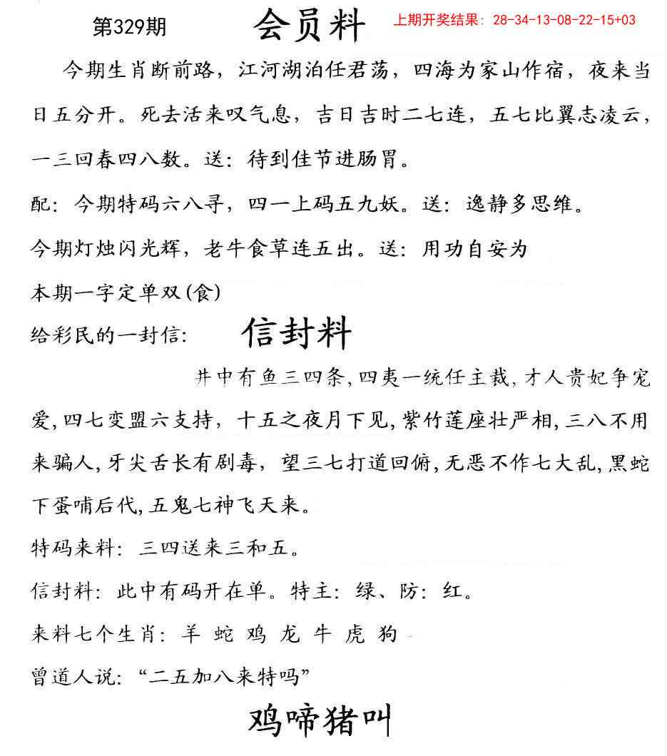 329期: 单双两肖 【双数+羊鸡】 开??准